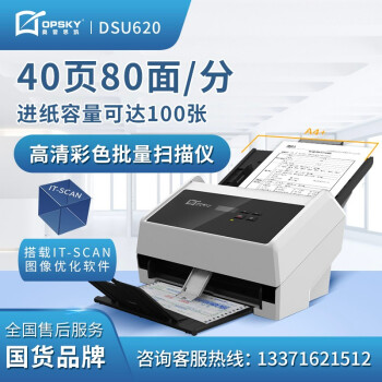 奧普思凱(OPSKY) 饋紙式掃描儀高清彩色雙面連續大容量自動進紙辦公設備發票文檔多介質掃描 DSU620 掃描儀(40頁80面/分鐘)